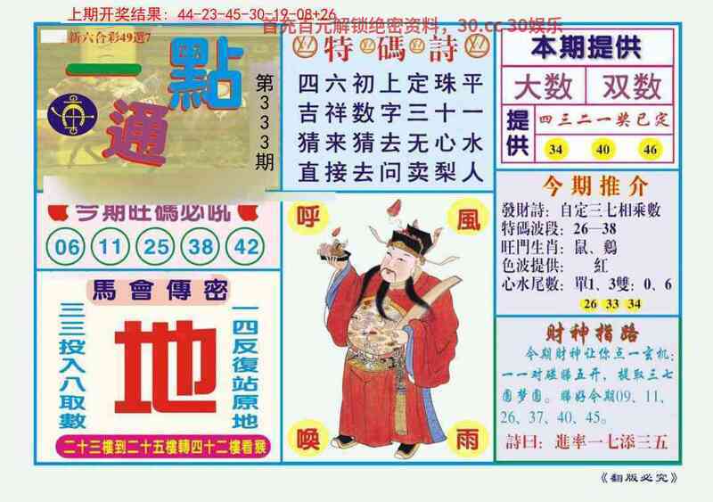 333期:男女两肖╠男肖+兔羊╣开:鼠06准